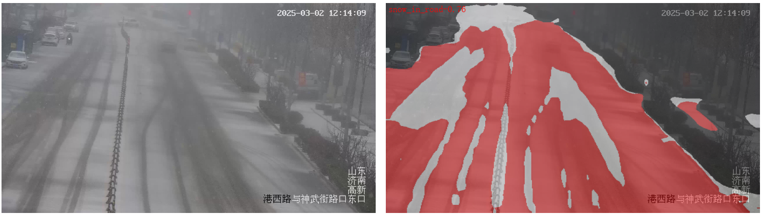 3月2日,濟(jì)南迎來(lái)雨雪和寒潮天氣,累計(jì)過(guò)程降雪量可達(dá)15毫米-25毫米,積雪深度可達(dá)15厘米以上。濟(jì)南市氣象臺(tái)發(fā)布暴雪紅色預(yù)警信號(hào)、道路結(jié)冰紅色預(yù)警信號(hào)和寒潮黃色預(yù)警信號(hào)。極端天氣下,由濟(jì)南能源集團(tuán)所屬大數(shù)據(jù)集團(tuán)、神思電子公司搭建的數(shù)算法全要素融合調(diào)度平臺(tái)發(fā)揮實(shí)戰(zhàn)作用,深度整合視頻感知數(shù)據(jù)和視頻算法、算力資源,迅速啟動(dòng)道路積雪監(jiān)測(cè)場(chǎng)景應(yīng)用,為城市管理部門(mén)提供了及時(shí)、準(zhǔn)確的道路積雪信息,為城市交通的順暢和市民的出行安全提供了有力保障。