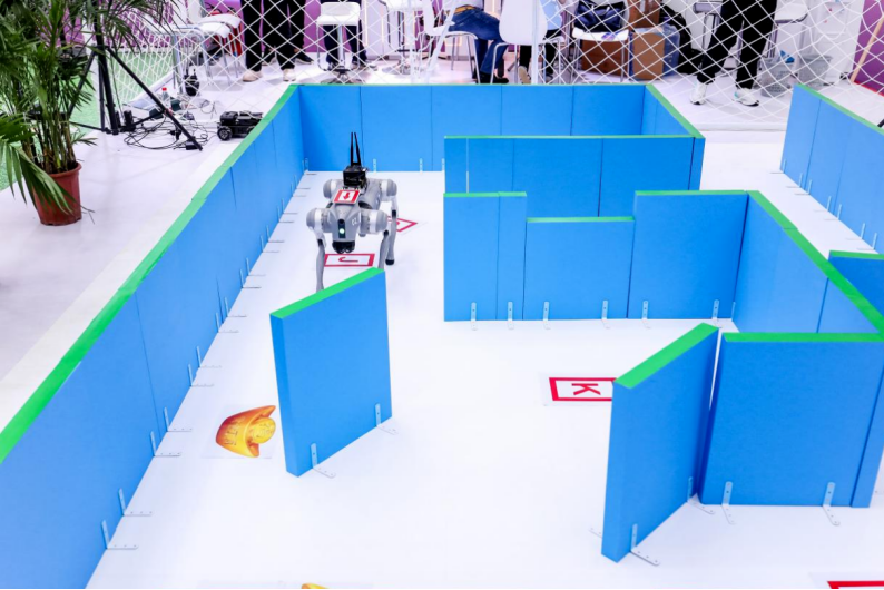 展會現(xiàn)場,設(shè)置“智能體智闖旋關(guān)”與“智能體智探幻陣”游戲,讓觀眾體驗“具身智能、空間智能、自主決策”及“空地協(xié)同多智能體聯(lián)動”全自主無人系統(tǒng)的強大能力。在“智能體智闖旋關(guān)”游戲環(huán)節(jié),4位持有民航局頒發(fā)的小型多旋翼無人機超視距駕駛員證書的專業(yè)選手與“神思智飛”展開精彩對決。最終“神思智飛”順利完成比賽,專業(yè)選手均未能完成挑戰(zhàn)任務(wù),在這場人工操控與AI技術(shù)的對弈中,“神思智飛”大獲全勝。