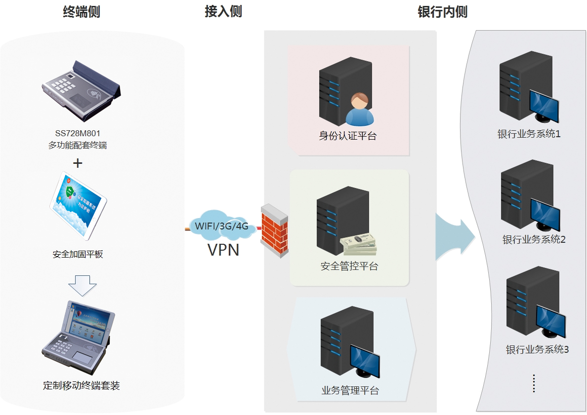 移動(dòng)終端套裝+移動(dòng)展業(yè)管理平臺(tái)??梢噪S身攜帶的非現(xiàn)金銀行柜臺(tái)。