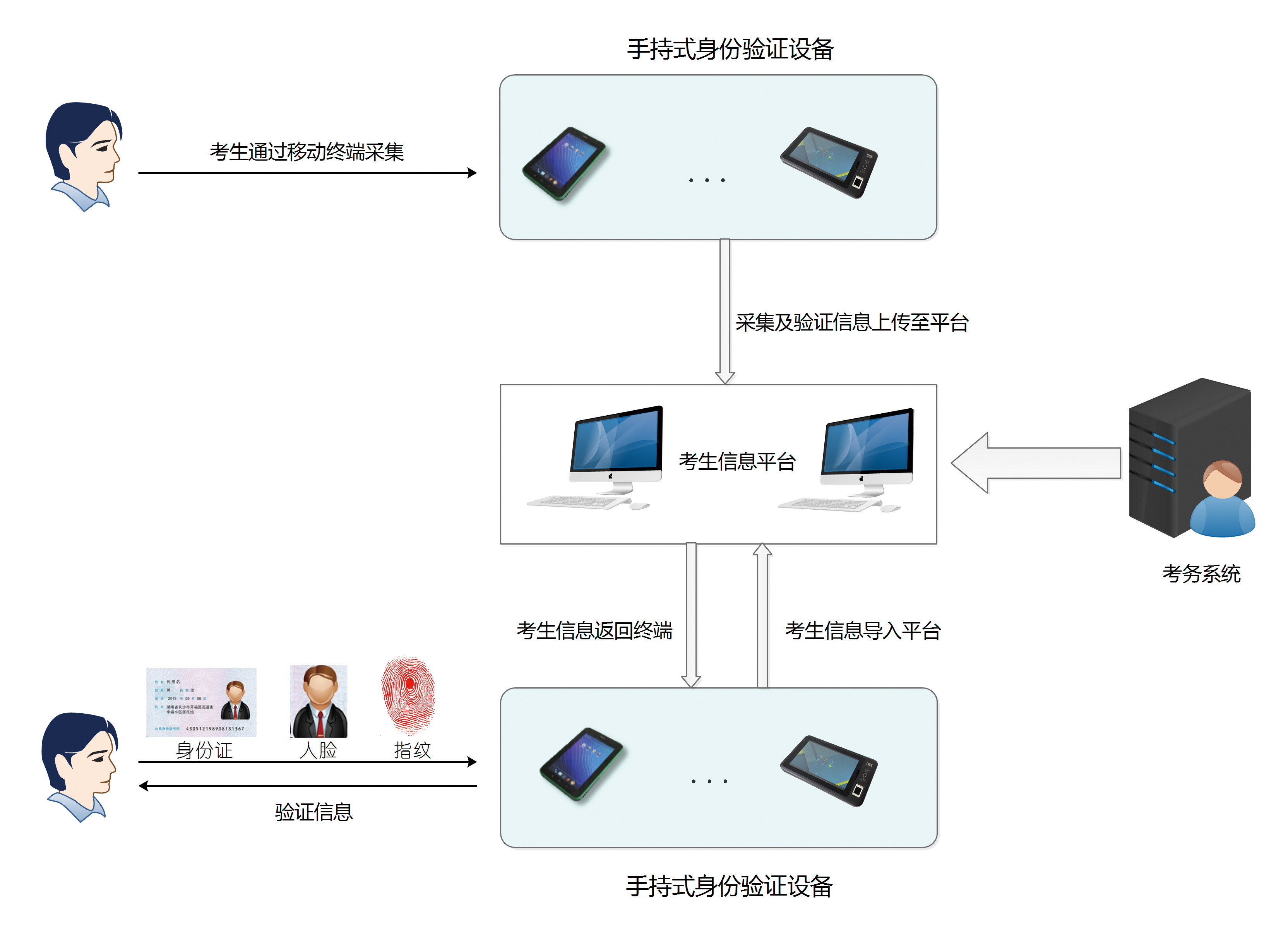 采集終端+移動核驗終端+考務(wù)綜合管理平臺。