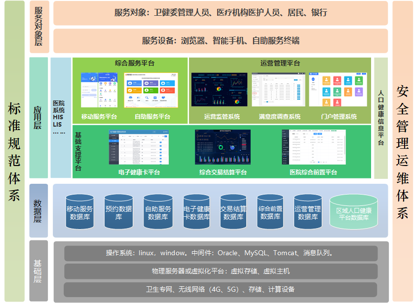 綜合服務(wù)平臺:預(yù)約診療服務(wù)系統(tǒng)、區(qū)域衛(wèi)生移動服務(wù)系統(tǒng)、區(qū)域衛(wèi)生自助服務(wù)系統(tǒng)。