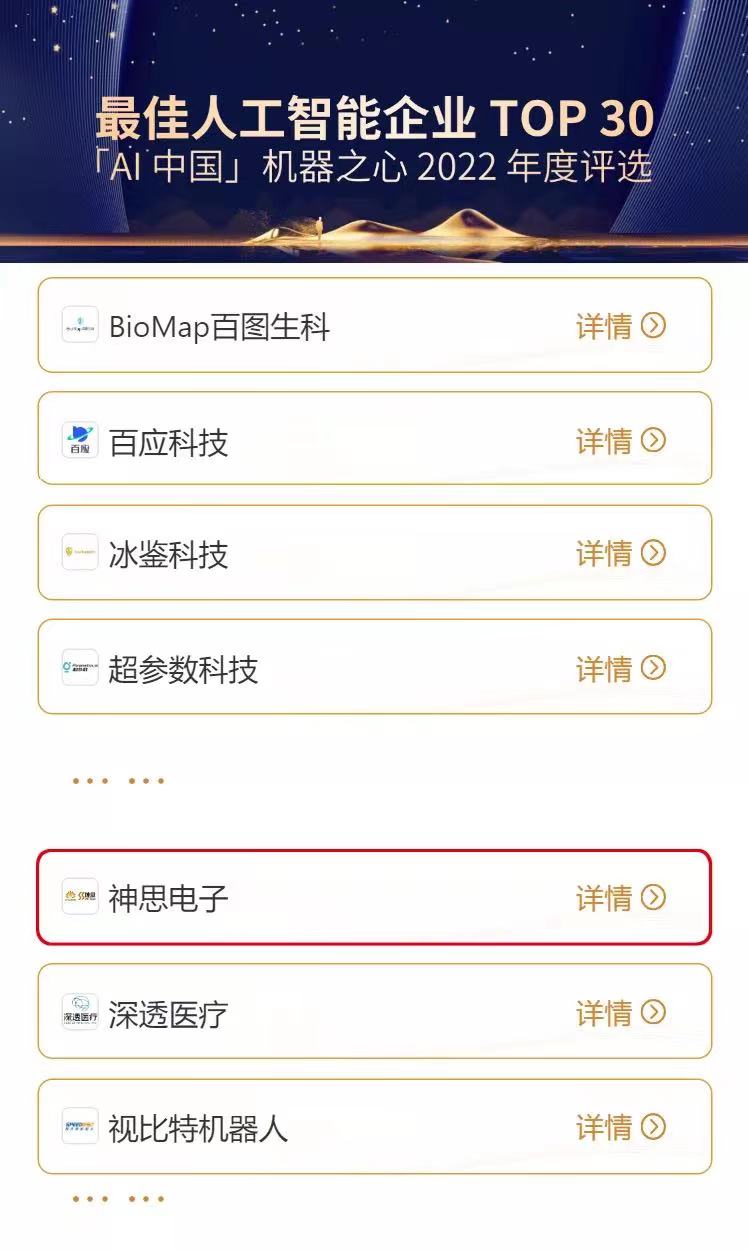 1月14日,主題為「以時(shí)間為尺,丈量 AI 價(jià)值」的機(jī)器之心2022年度獎(jiǎng)項(xiàng)評(píng)選結(jié)果公布,本次評(píng)選歷時(shí)4個(gè)月,共設(shè)置「AI 中國(guó) · 企業(yè)榜」、「AI 中國(guó) · 方案榜」、「AI 中國(guó) · 趨勢(shì)榜」三大分榜。神思電子與商湯科技、曠視科技、思必馳等優(yōu)秀企業(yè)共同入選2022年度最佳人工智能企業(yè) TOP 30,神思電子已連續(xù)三年榮登榜單。
